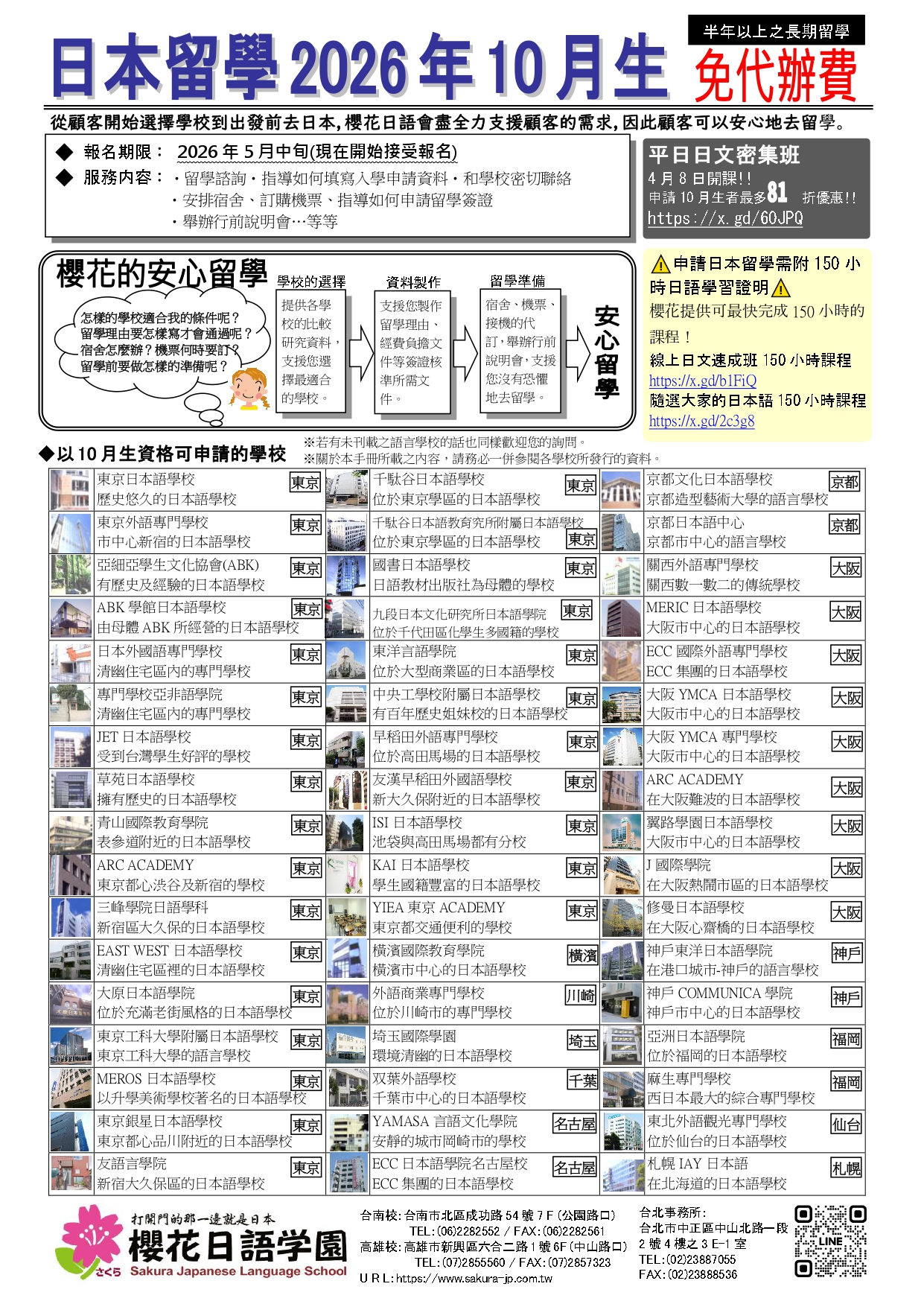 如果您對 2026年10月日本留學有任何想法或疑問,歡迎隨時與我們聯繫,我們將為您提供最合適的建議。